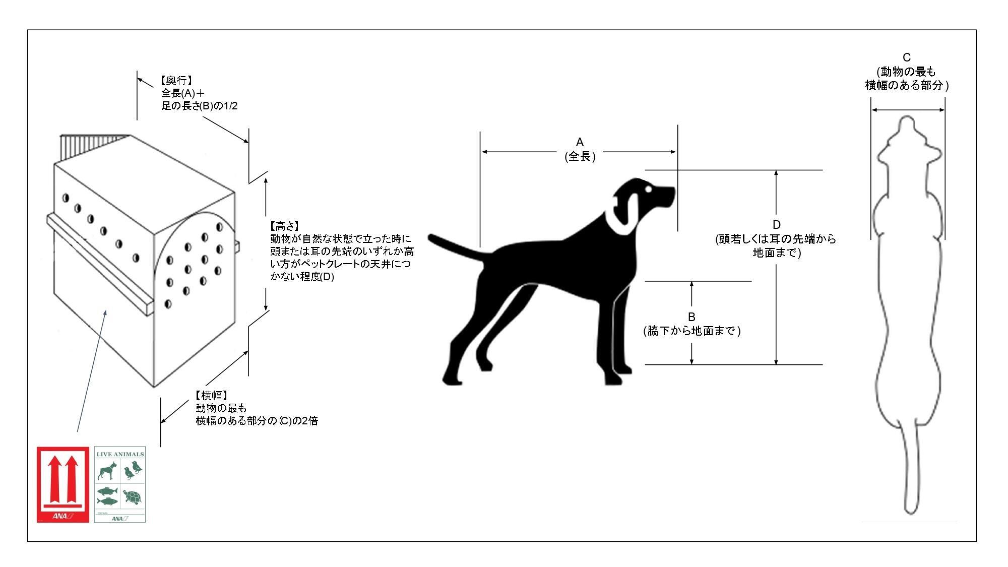 動物(ペット)を安全に輸送するために、ANAグループではお客様の責任において、以下の条件を満たす動物輸送容器のご準備をお願いしております。